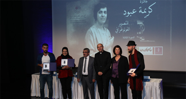 بأجواء مفعمة بالابداع والبهجة، وتحت شعار "القدس بعدسة فلسطينية"، وبرعاية من بنك فلسطين احتفلت دار الكلمة الجامعية للفنون والثقافة في مدينة بيت لحم بتسليم جوائز مسابقة المصورة كريمة عبود للتصوير الفوتوغرافي لعام 2018، وذلك على مسرح دار الكلمة الجامعية.